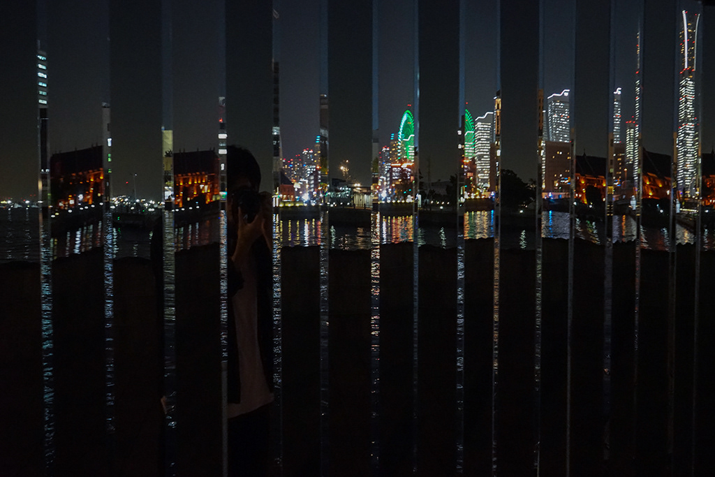 「スマートイルミネーション横浜2019」への出展作品。 横浜の夜景を望む堤防で作品の前に立つと、ミラーによって自身と夜景が交互に映し出される。夜景が映り込むミラーは薄く、風によって煌びやかな世界を歪ませる。作品自体を発光させず、環境を演出し、新たな景色を創出した。