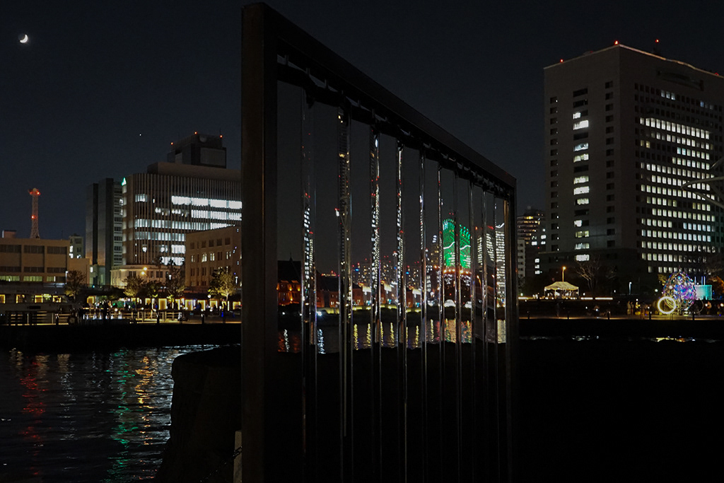 A nightscape is a cityscape formed by a collection of individual lights. Each light has a different and varied background. The light from the street lamps illuminates the park, the light that directs the Ferris wheel, or the light that lights up a room in a building. They harmonise to create a single nightscape. The nightscape of Yokohama, which is an accumulation of lights from various backgrounds, overlaps and transfers to you, a member of the world, and is reconstructed as a new single landscape.